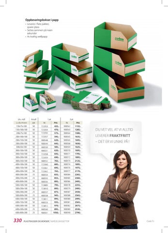 Oppbevaringsbokser i papp • Leveres i flate pakker, sparer plass • Settes sammen på noen sekunder • Av kraftig wellpapp