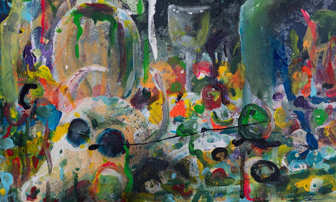Alene men langt fra ensom 2022, 50x40 cm Blandingsteknikk på linlerret