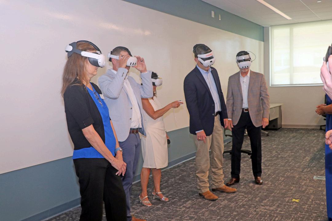 Holographic anatomy training equipment (left) creates realistic, interactive 3D models of patients or medical procedures. This immersive training method enhances spatial understanding and allows for hands-on experience without the limitations of physical models or cadavers Dr Brian McCall (center), Chancellor of the Texas State University System, helped introduce the new building during the ribbon cutting ceremony LSCPA Foundation Chair Payton Keith, President Dr Betty Reynard, and Foundation Board Member Deborah Drago of Entergy, take a moment for a candid photo