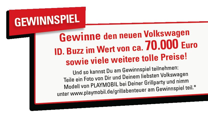 www.edeka.de/ferienspass NURMITDERAPP TOLLEFREIZEITANGEBOTE, RABATTE,GEWINNE u.v.m. Jetzt entdecken! JETZT GRATIS DOWNLOADEN! Gültig von Montag, 31.07. bis Samstag, 05.08.2023 SUPERKNÜLLER! 29.99 49.99 UVP -40 % Volkswagen T1 Camping Bus –Edition 2 „71409“ Ab 5 Jahren. Trademarks, design patents and copyrights are used with the approval of the owner Volkswagen AG. Teilnahmezeitraum 31.07.-30.09.2023 * Die Gewinne werden unter allen Teilnehmern, die die Teilnahmebedingungen erfüllen, verlost und stehen für dieses Gewinnspiel im EDEKA-Verbund (EDEKA, Marktkauf, Netto Marken-Discount) lediglich nur einmal zur Verfügung. Alle weiteren Informationen sowie die Teilnahmebedingungen unter www.playmobil.de/grillabenteuer Grillabenteuer