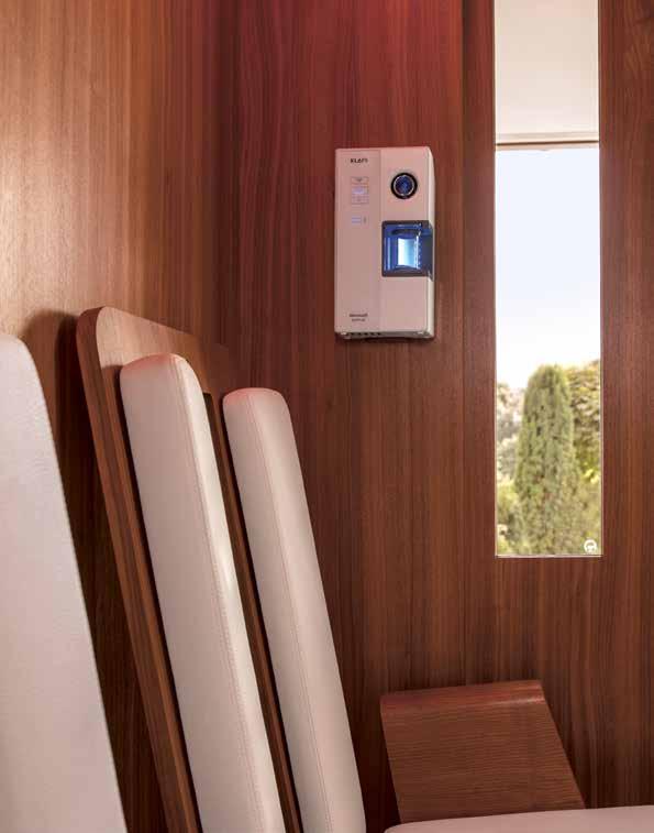 Via de app verandert u uw sauna in een tropen bad, een soft-stoombad, een aroma- of warmelucht-bad. Met de gepatenteerde klimaatregelaar kunt u hoge temperaturen met een lage luchtvochtigheid en lage temperaturen met een hoge luchtvochtigheid instellen.