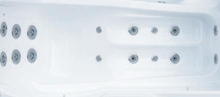 Afmetingen 4430 x 2350 x 1290mm Product lay-out 3 Zitplaatsen Volume 6300 L Gewicht (droog) 804 Kg Voeding Massage systeem Massage Jets 14