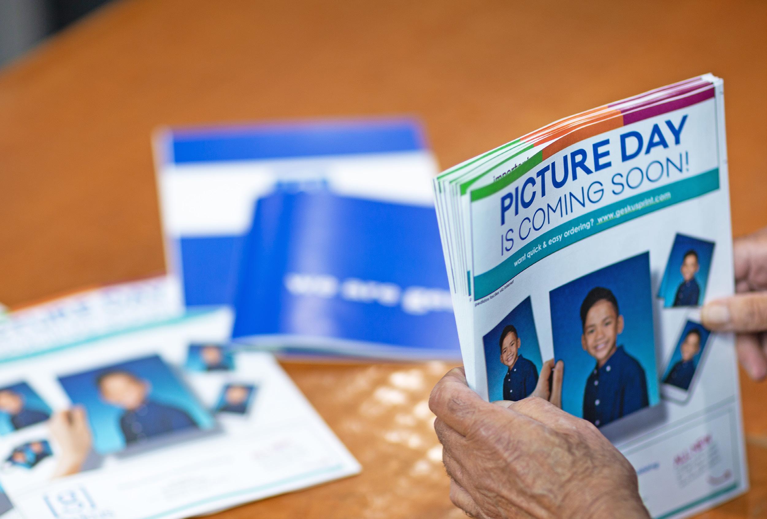 Geskus assumes the responsibility of providing proper notification for picture day. This includes posters to hang throughout the school, take-home postcards announcing the portrait dates and instructions, as well as electronic picture day and retake day notices to be provided to the school for use on the school website, newsletter and email blast. Geskus will provide envelope order-forms to the school offices as needed.