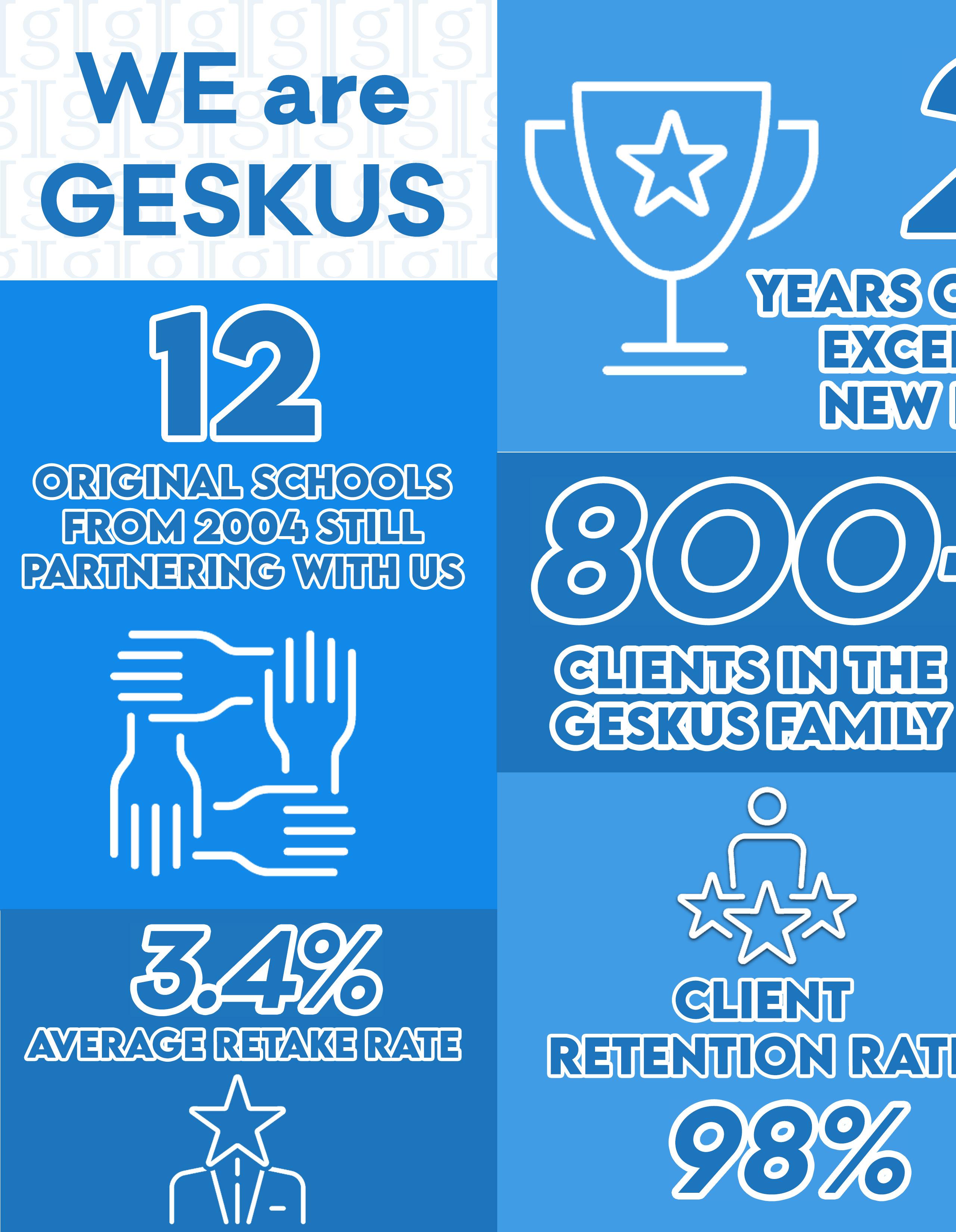 Geskus will handle all customer/parent calls and address any questions or concerns of all involved. Geskus will handle all processing of payments, including insufficient funds. At Geskus we believe no customer should be unhappy for any reason. We offer a 100% money back guarantee and a ‘no questions asked’ retake/refund policy. We will work directly with the families involved with limited involvement from the school.