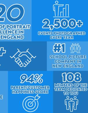 We are honored for the opportunity to present Geskus Studios & Yearbook Publishing as your school photography partner. This past year we proudly celebrated our 20th anniversary with another record-breaking season, continuing our tradition as New England’s #1 school photography team. Today, we proudly serve 800 schools across the region, including many in your area. Our success stems from two decades of building trusted relationships and providing unmatched value, quality, and service.