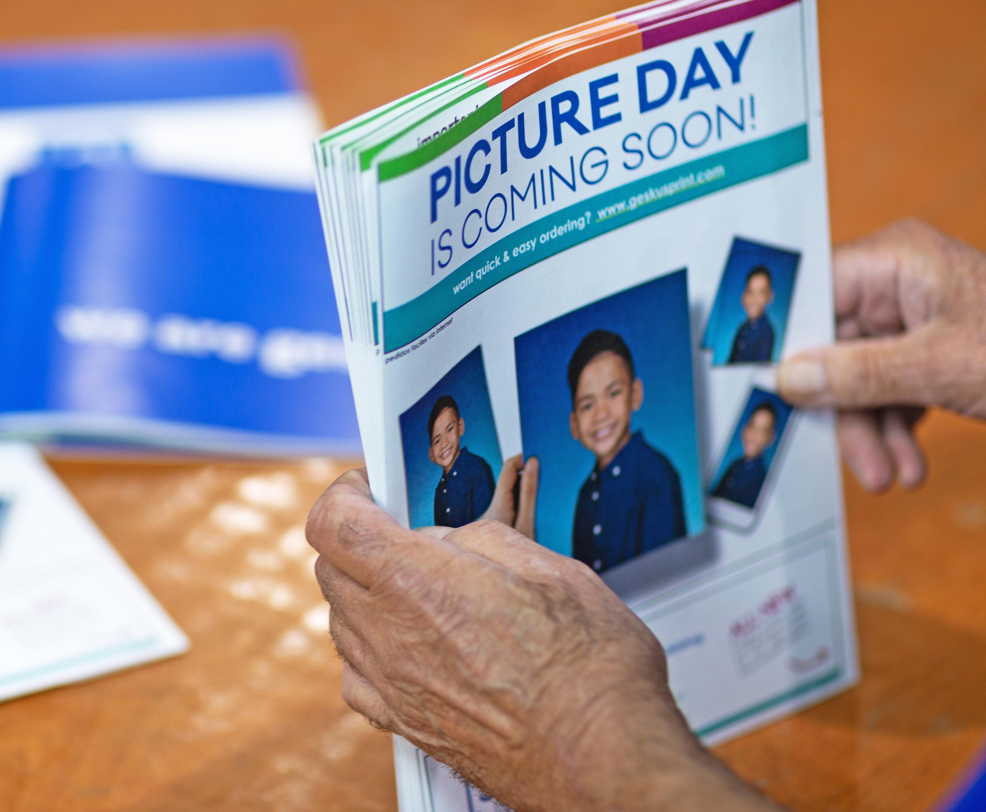 Geskus assumes the responsibility of providing proper notification for picture day. This includes posters to hang throughout the school, take-home postcards announcing the portrait dates and instructions, as well as electronic picture day and retake day notices to be provided to the school for use on the school website, newsletter and email blast. Geskus will provide envelope order-forms to the school offices as needed.