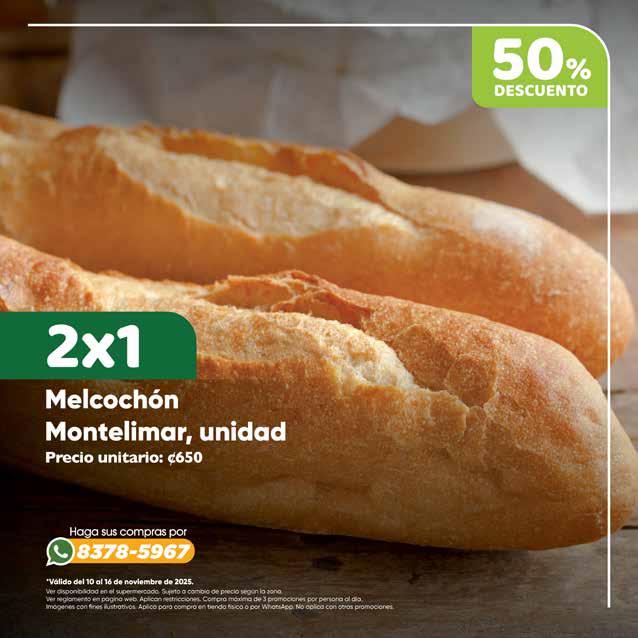 *Válido del 10 al 16 de noviembre de 2025. Ver disponibilidad en el supermercado. Sujeto a cambio de precio según la zona. Ver reglamento en página web. Aplican restricciones. Compra máxima de 3 promociones por persona al día. Imágenes con fines ilustrativos. Aplica para compra en tienda física o por WhatsApp. No aplica con otras promociones.