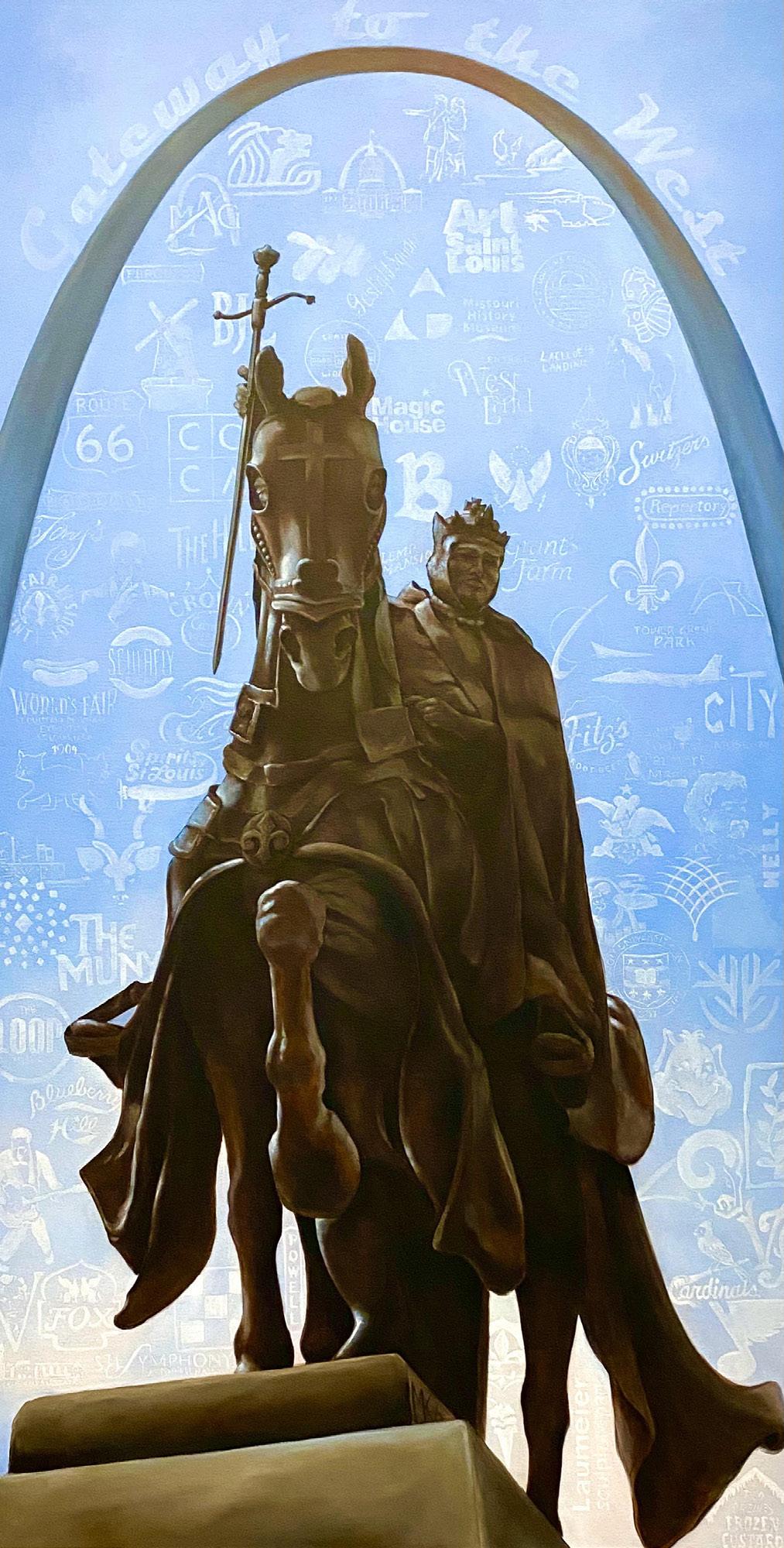 to the St. Louis Artists Guild because of the guild’s exhibition space, its proximity to hotels and its history. The St. Louis Artists Guild is the oldest American visual arts organization west of the Mississippi River. Her artwork depicts the iconic statue