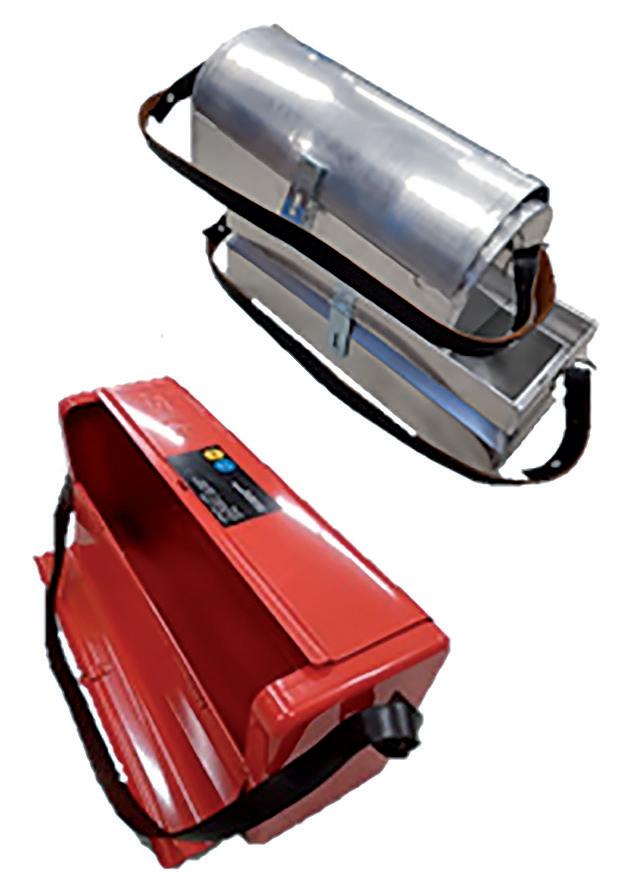 geräumiger Stahlblechkoffer mit Tragegriff für Aufschweissbrenner und Zubehör. Ausreichend Platz für bis zu 20 m Brennerschlauch.
