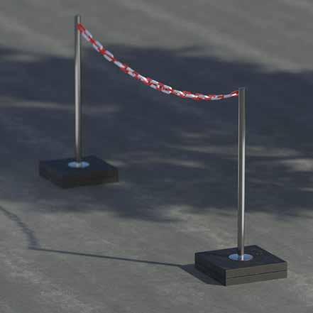 Pfosten, Fussplatte und Kunststoffkette (rot-weiss)