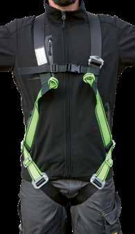 Persönliche Schutzausrüstung gegen Absturz bestehend aus Helm mit Kinnband, Auffanggurt, Falldämpfer und Verbindungsmittel mit Anschlageinrichtung�