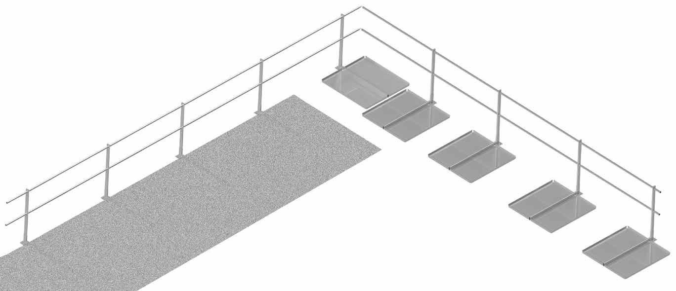 Geländerholm Hand- und Knielauf, Rettungswegpfosten, Ausleger, Plattenträgerprofil, Eckverbinder, Bordbrett, evtl � Gitterrost