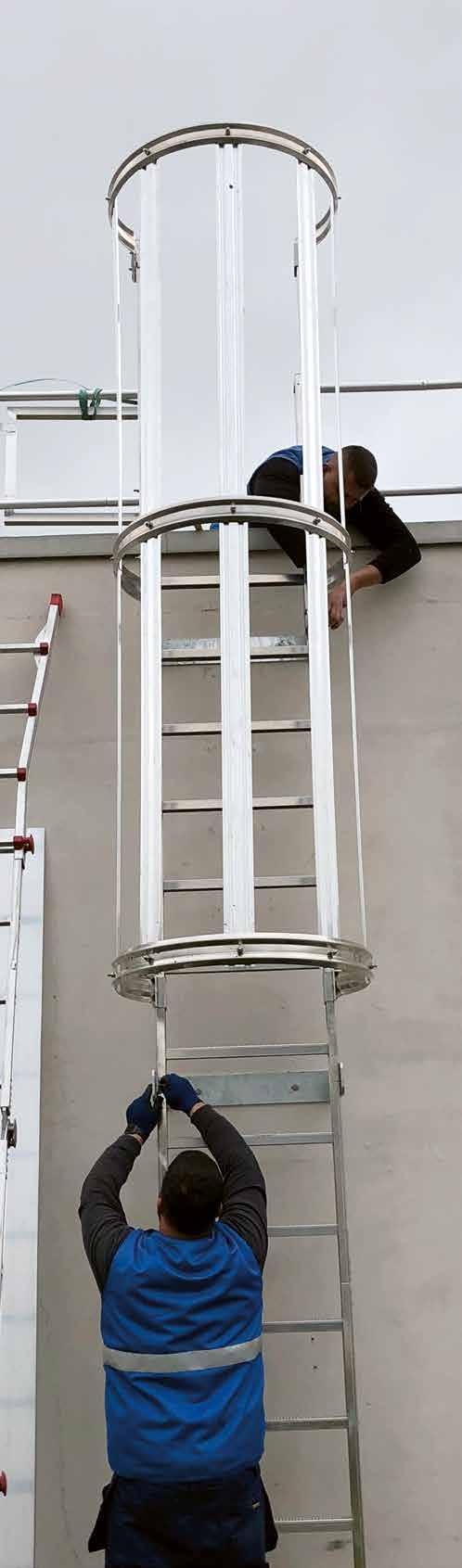 Die Steigleiter dient als fester Zugang für Wartungsarbeiten auf Dächern, als Notleiteranlage oder als Zugang zu Maschinen und Anlagen Sie ist zudem für den Einsatz als Fluchtweg geeignet und entsprechend zugelassen Die ortsfeste Montage erfolgt direkt am Gebäude� Die Steigleiter kann nach Mass gefertigt oder als vorkonfiguriertes Set geliefert werden�