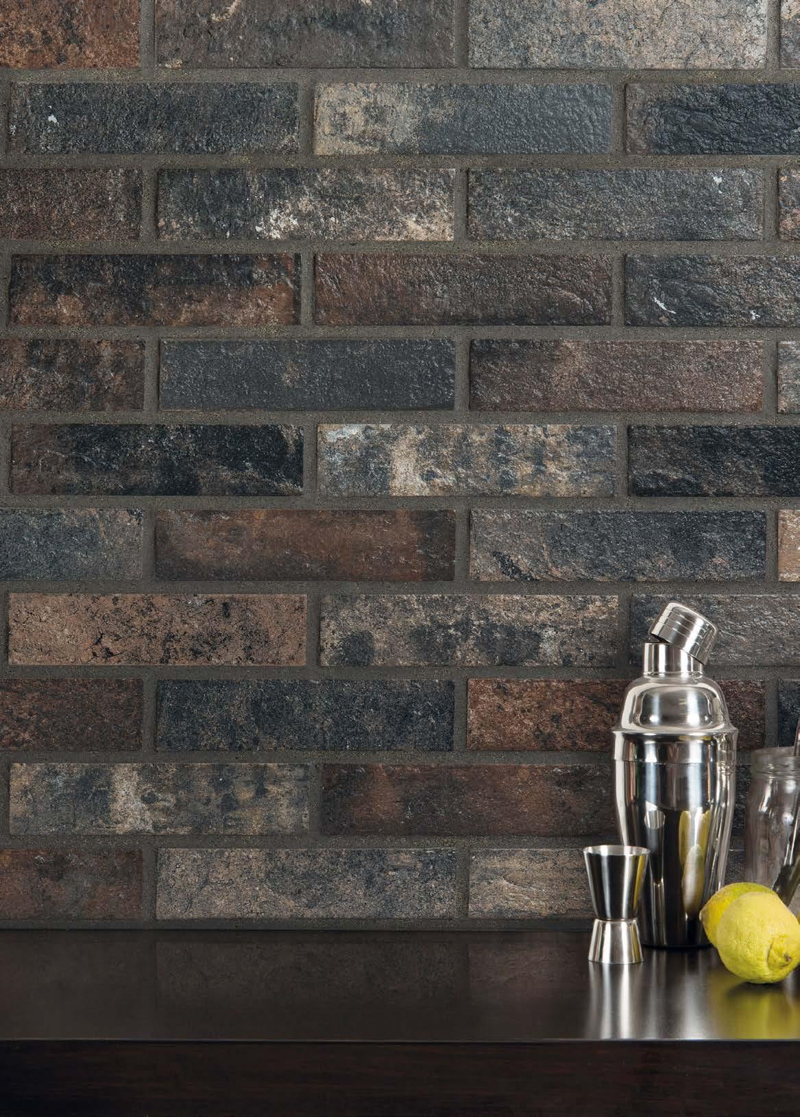 Neben den Riemchen lassen sich auch mit den Kunststein-Verblendern effektvolle Wände im Innenund Aussenbereich schaffen.