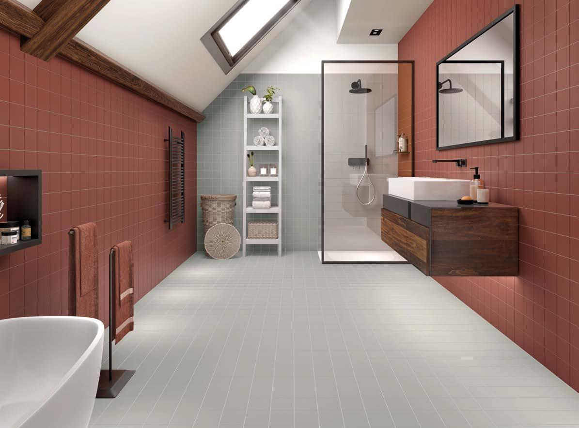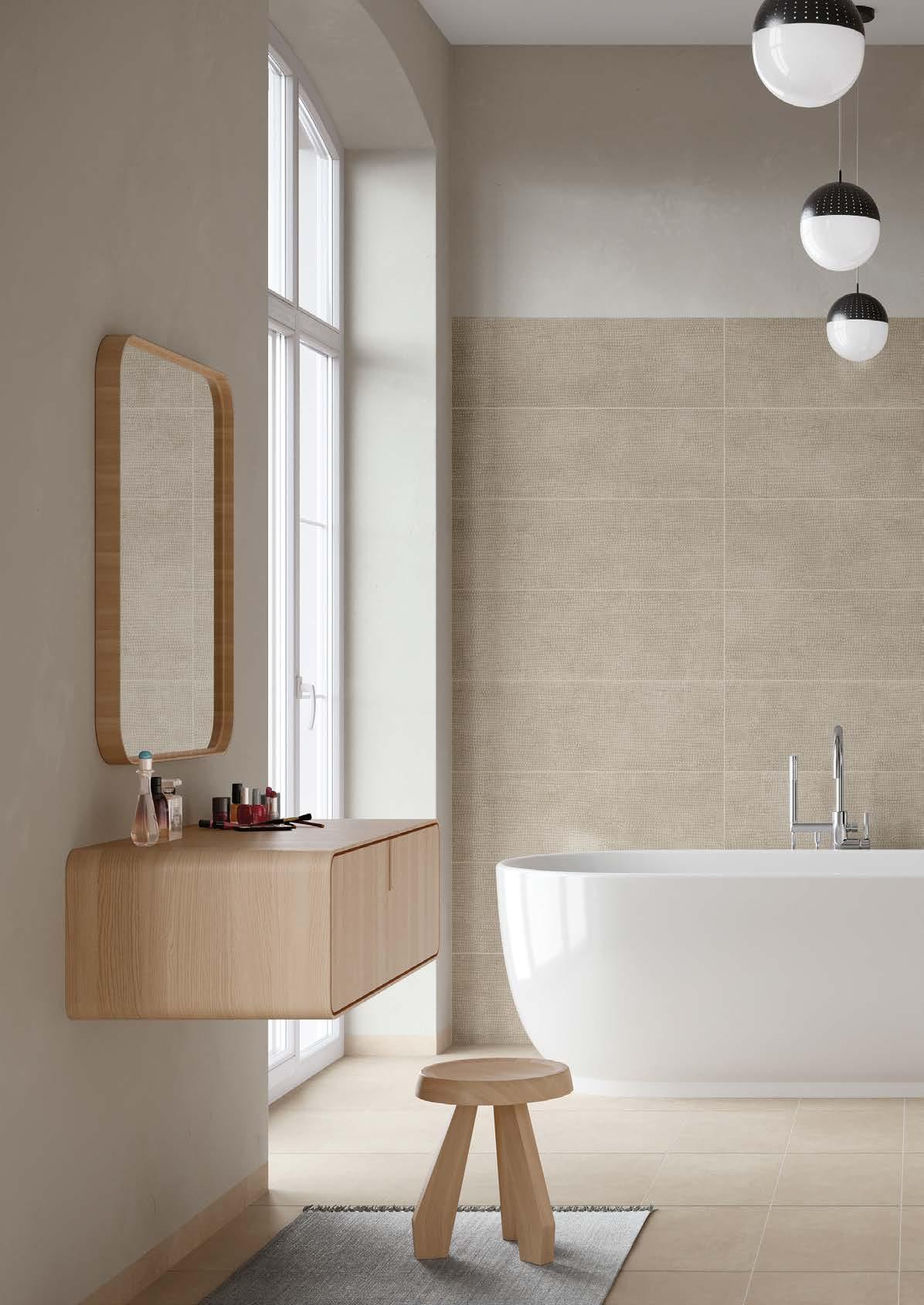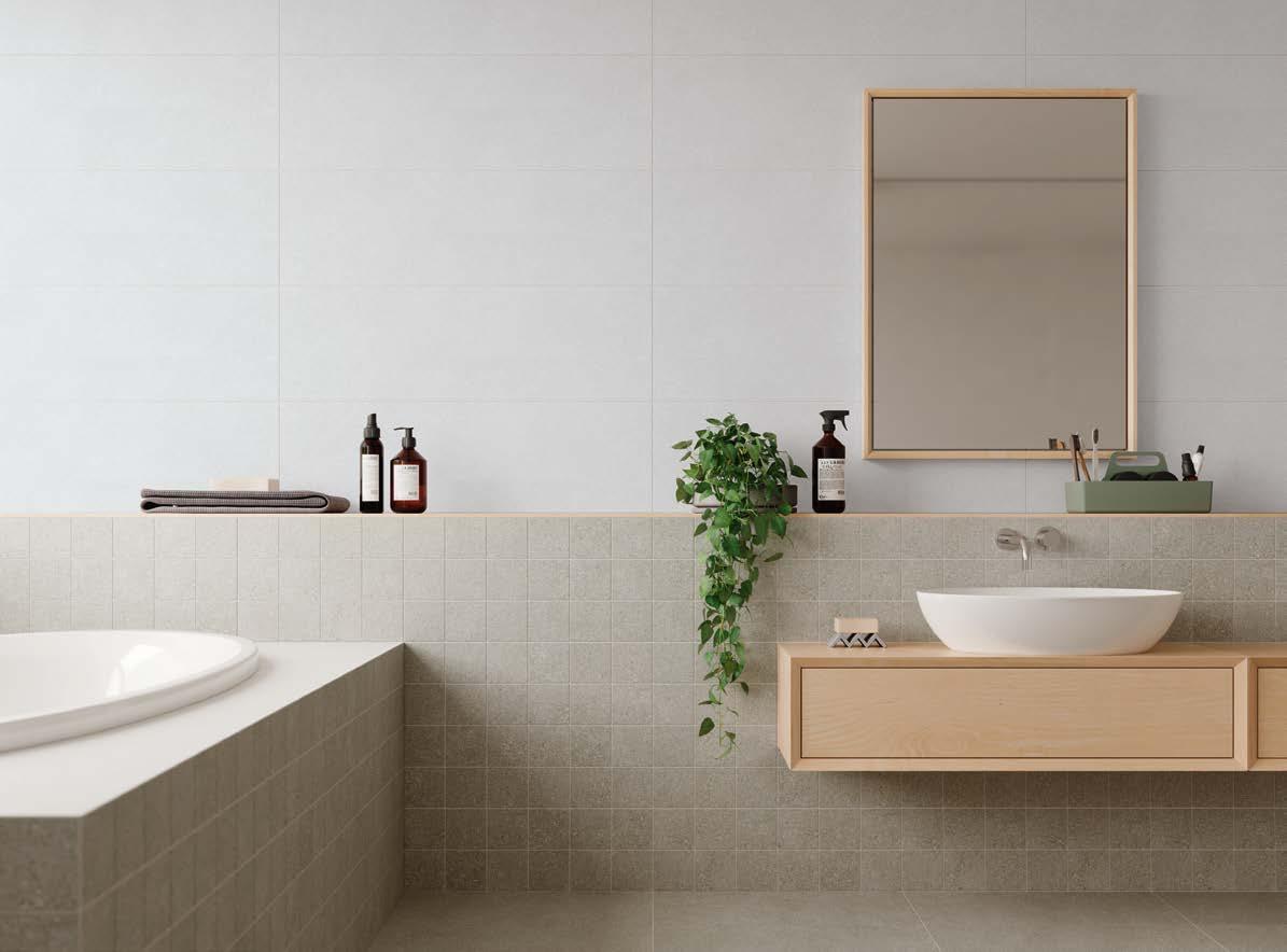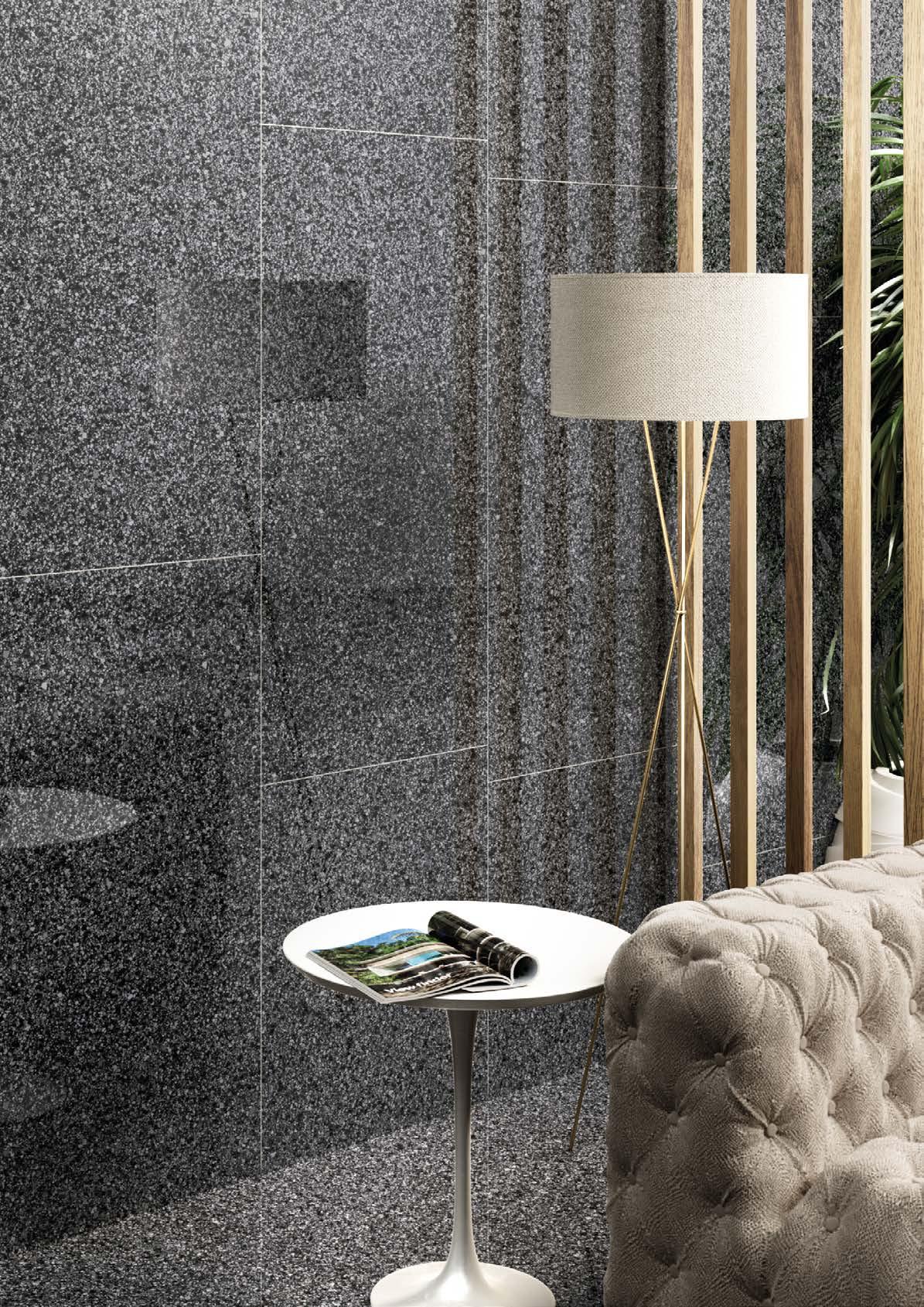 Hektik und Stress prägen unseren Alltag. Zurückhaltende Nüchternheit mit ausgewogenen Kontrasten zwischen hell und dunkel lassen uns zur Ruhe kommen. Reduzierte Oberflächenstrukturen und grössere Formate wie, 60 ×120 cm, 120 × 120 cm oder fast fugenlos im Format 120 × 280 cm geben den Räumen Entspannung und Ordnung. In Kombination mit schlichten Farben und gradlinigem Design entsteht ein auf das wesentliche konzentrierter Minimalismus der dem Zeitgeist entspricht.