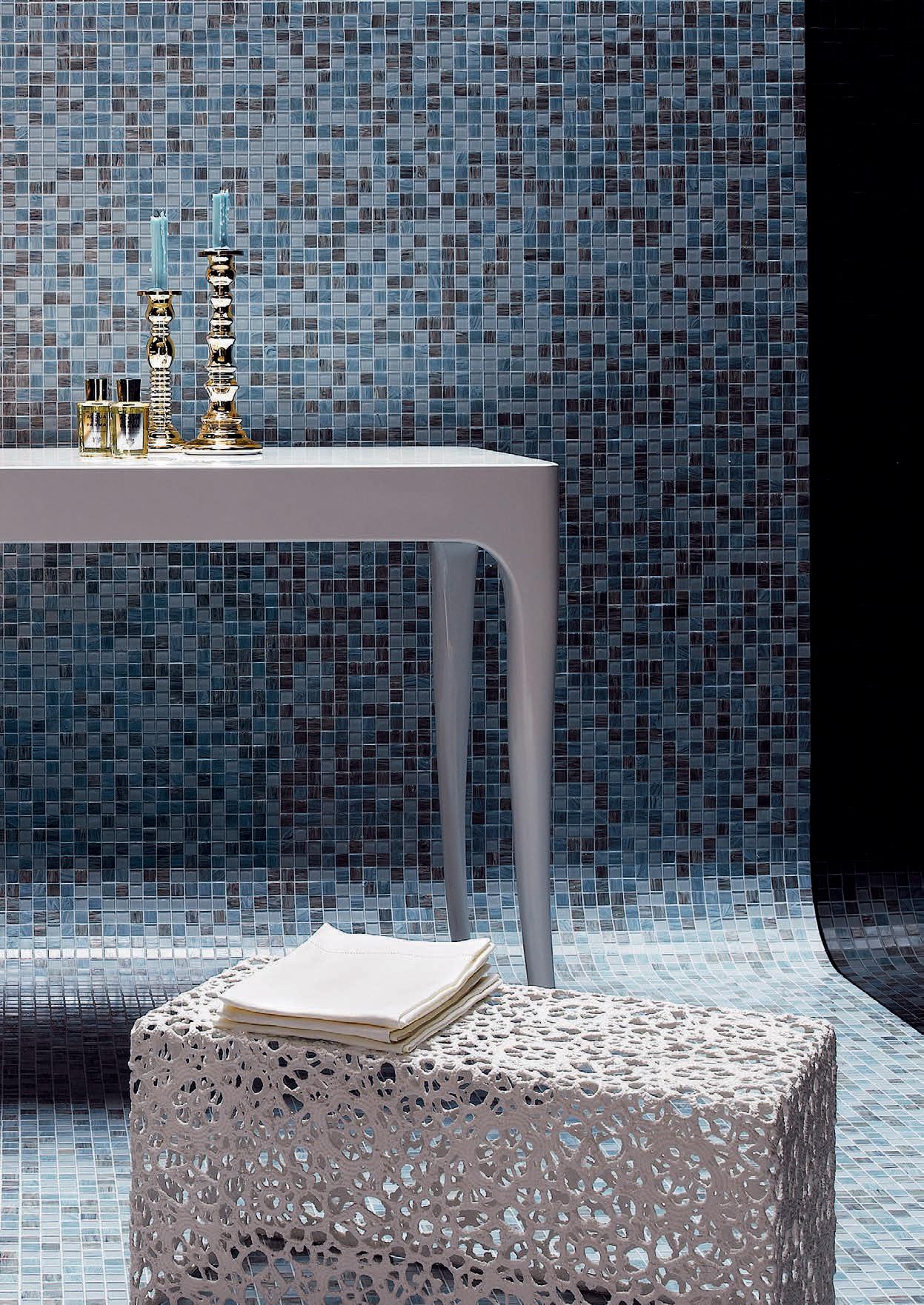 Feinsteinzeugmosaik unglasiert rückseitig netzgeklebt blau dunkel