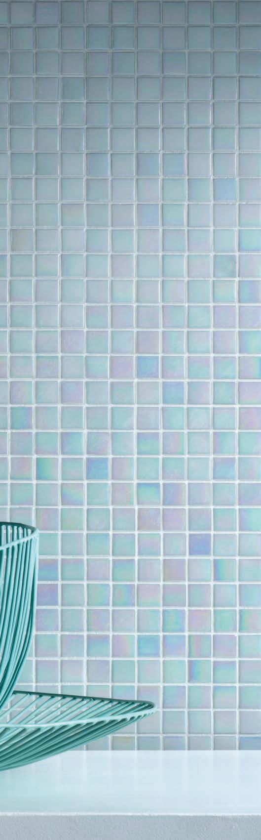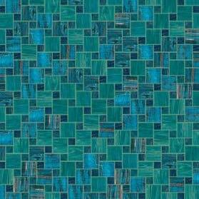 Glasmosaik vorderseitig Papiergeklebt wasserblau-türkisperlmutt