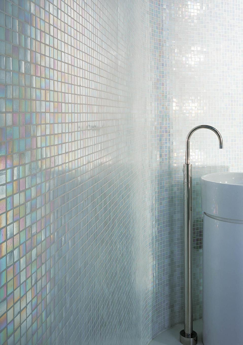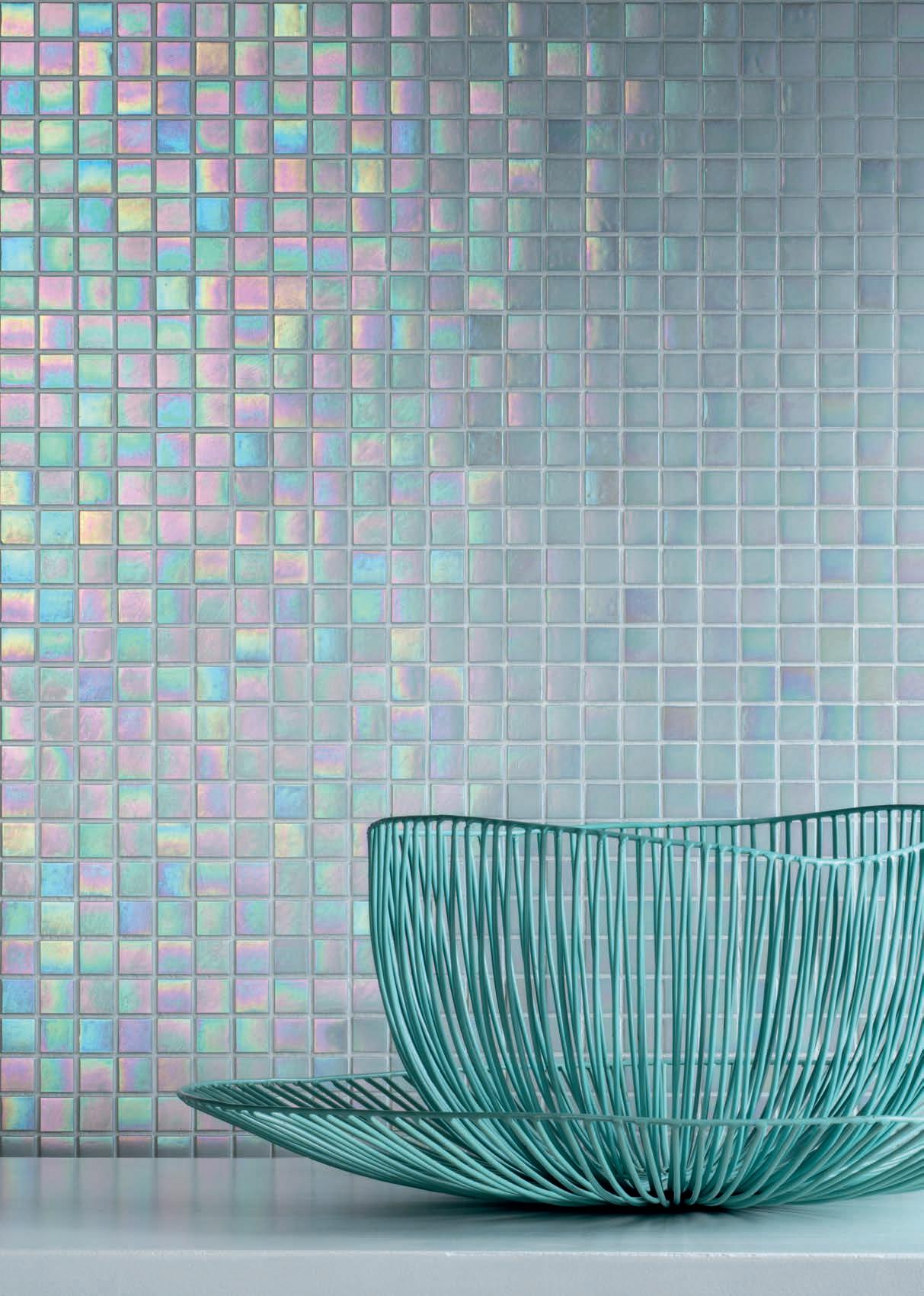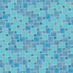 Glasmosaik vorderseitig Papiergeklebt wasserblau-türkisperlmutt
