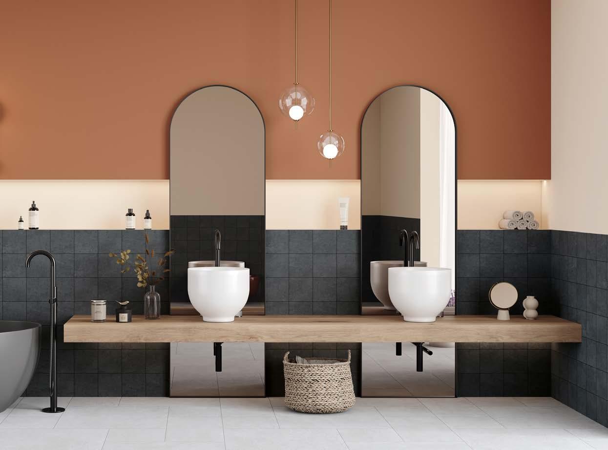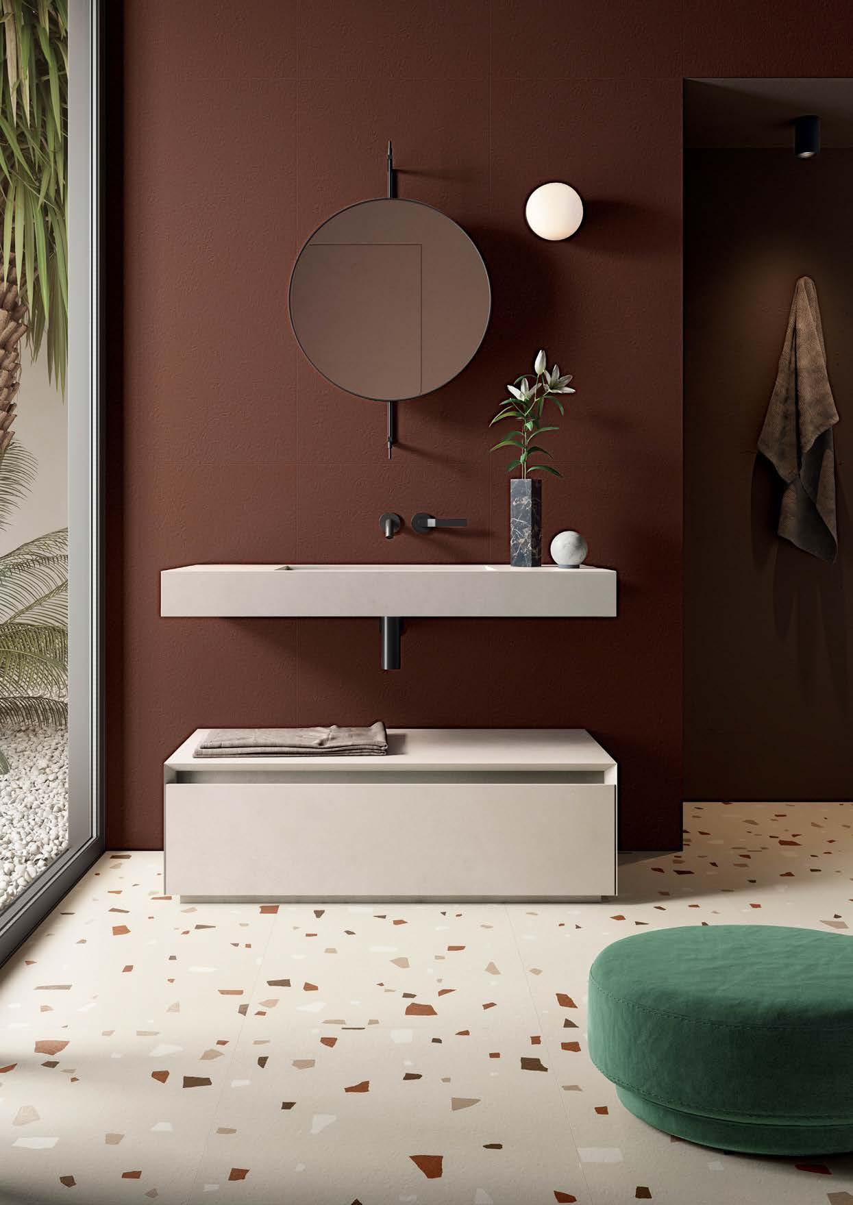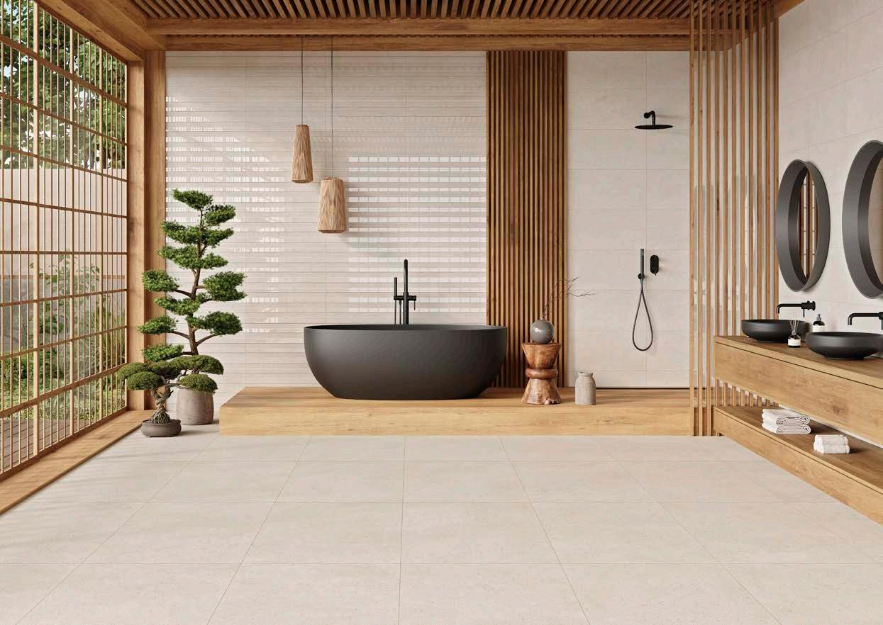 Hektik und Stress prägen unseren Alltag. Zurückhaltende Nüchternheit mit ausgewogenen Kontrasten zwischen hell und dunkel lassen uns zur Ruhe kommen. Reduzierte Oberflächenstrukturen und grössere Formate wie, 60 ×120 cm, 120 × 120 c m oder fast fugenlos im Format 120 × 280 c m geben den Räumen Entspannung und Ordnung. In Kombination mit schlichten Farben und gradlinigem Design entsteht ein auf das wesentliche konzentrierter Minimalismus der dem Zeitgeist entspricht.