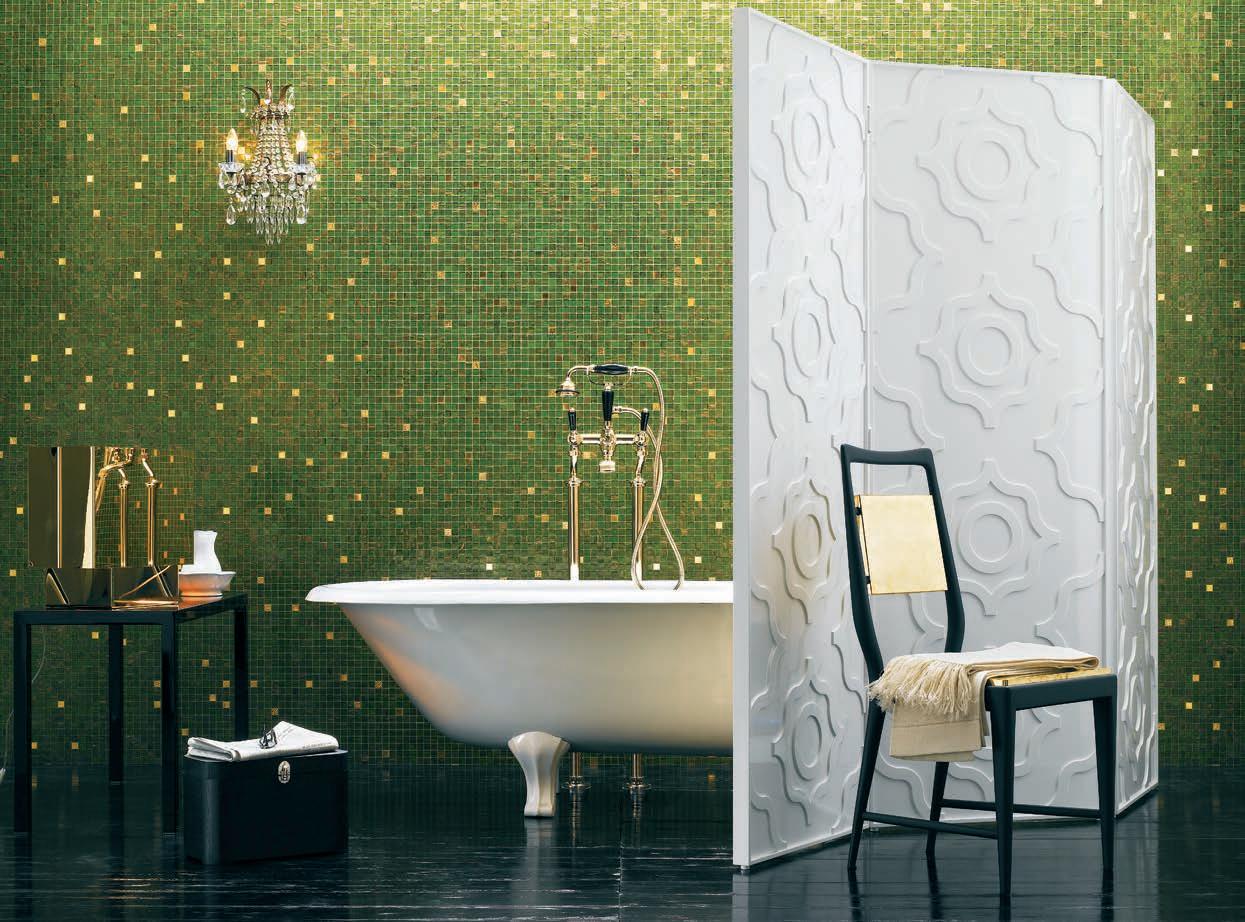 Glasmosaik vorderseitig papiergeklebt olivgrün transparent