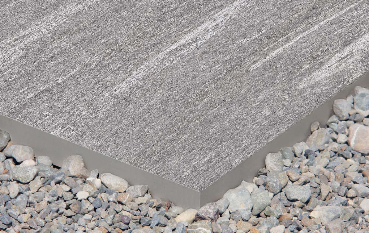 Unser Katalog GANZ TERRASSEN & BALKONE präsentiert zahlreiche Feinsteinzeug-Platten für den Aussenbereich. Das Sortiment wird durch Unterkonstruktionen und das passende Zubehör ergänzt.
