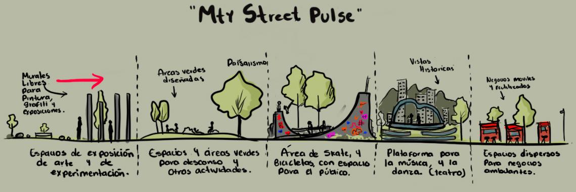 La problemática principal de este proyecto radica en la falta de espacios públicos adecuados y accesibles en Monterrey para la expresión de culturas urbanas como el arte callejero, el skateboarding y la música. Los espacios abandonados generan inseguridad y estigmatización, impidiendo su aprovechamiento y limitando la integración social. El diseño arquitectónico deberá incluir espacios específicos para diferentes tipos de arte urbano, desde graffiti hasta instalaciones artísticas y performance. Además, se propondrán áreas para actividades complementarias como la venta de artesanías y alimentos, generando un ecosistema autosustentable donde se integra la comunidad y que atraiga tanto a artistas como a visitantes locales y turistas.