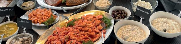 – Vi vill att alla ska kunna njuta av den fantastiska maten och skärgården. Räkfrossan är ju en klassiker och både skaldjursbuffén och skärgårdsbuffén är något utöver det vanliga, inte minst i den här unika miljön, berättar Göran Delin från Fisk & Skaldjur i Gävle , som ansvarar för att leverera den förstklassiga maten ombord.