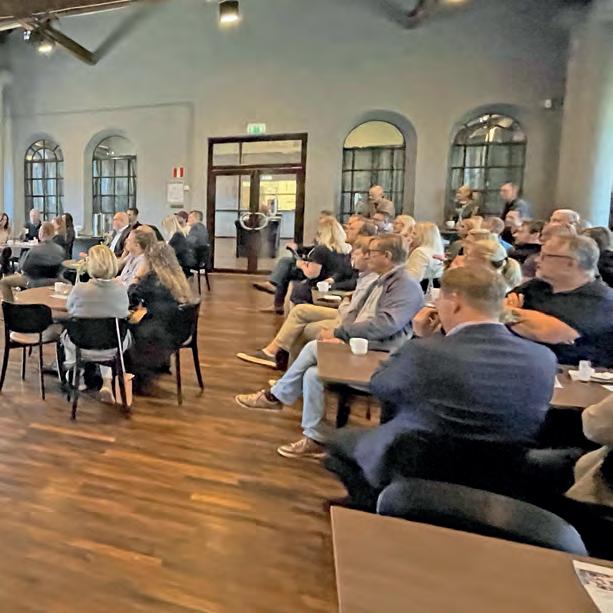 Näringslivsdirektör Mattias Durnik tog vid och delade med sig av aktuell information från kommunens näringslivsavdelning. Han påminde om viktiga kommande evenemang, som Näringslivsfrukosten den 26 september, Anbudsskolan den 10 oktober och den årliga Företagarveckan som hålls den 5–7 november. Durnik betonade också framgångarna i mätningar från näringslivsprogrammets indikatorer och delmål som ska uppnås till slutet av 2025 där hela 70 procent av dessa nu går åt rätt håll, varav flera faktiskt redan uppnåtts.