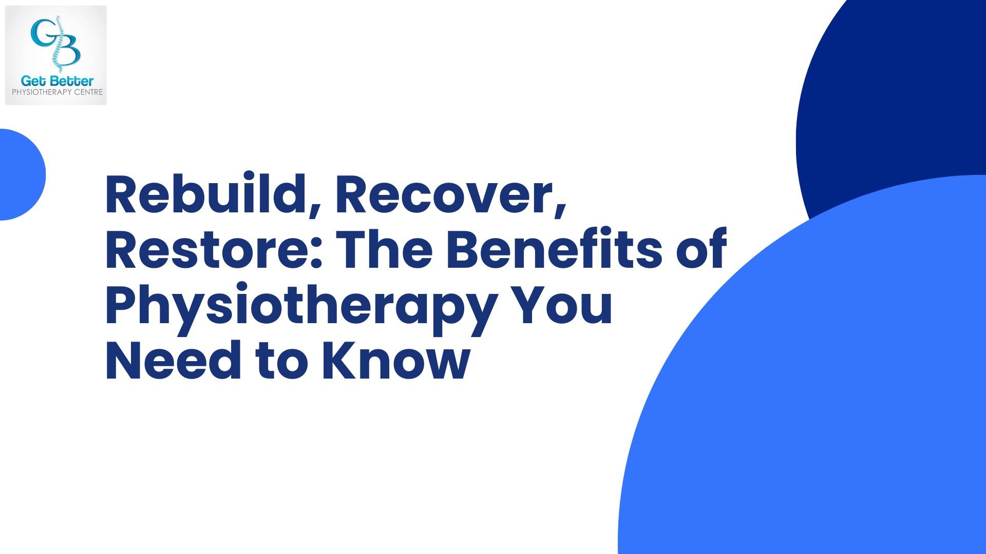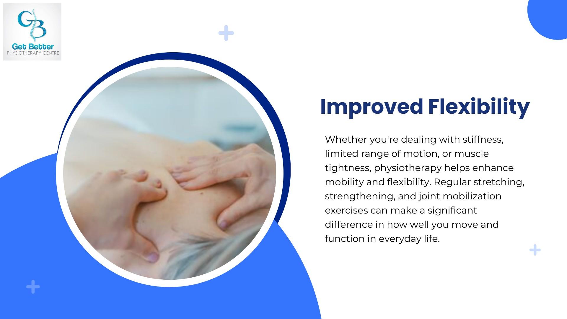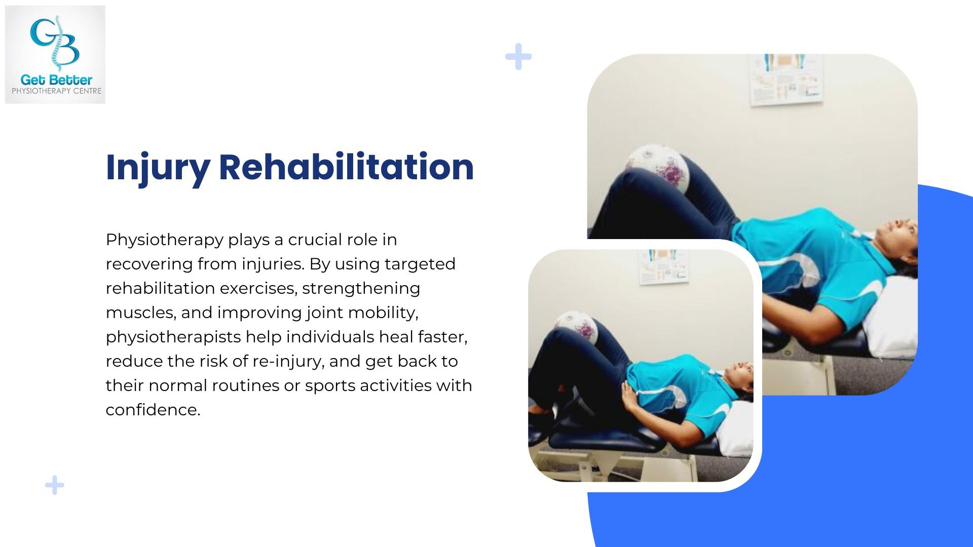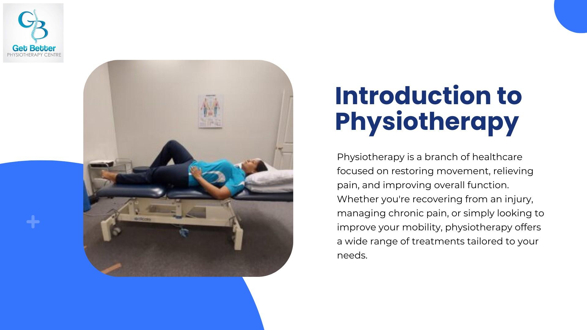 At Get Better Physiotherapy Centre, we help you move better, feel stronger, and live pain-free. Our expert physiotherapists provide personalized treatments to improve mobility, reduce pain, and prevent future injuries, ensuring a quicker recovery and better quality of life. Experience the benefits of healing through targeted therapy today!