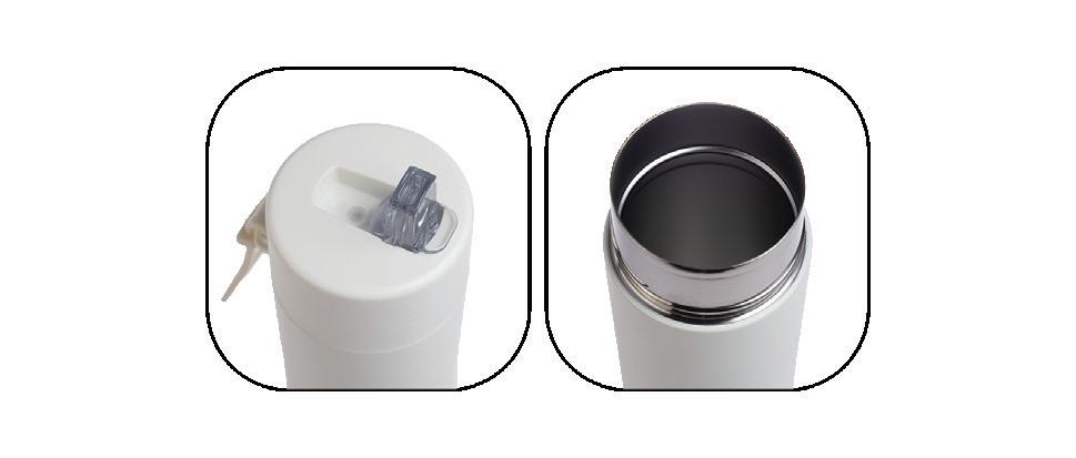 A double-wall cup with a black PP inner and a stainless steel outer. The unique sliding lid features an easy-to-drink opening, providing convenience on the go. Capacity: 390ml.