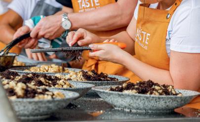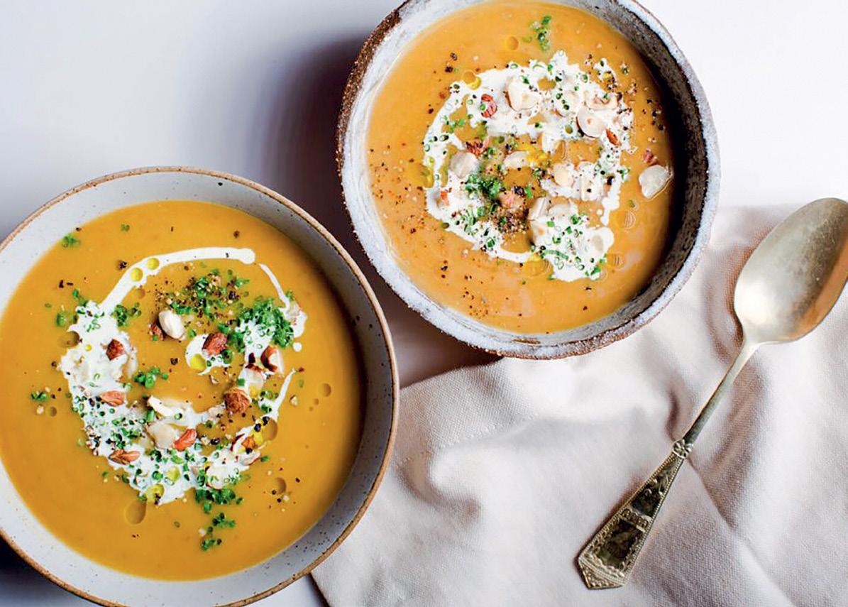 2. To serve, top the cauliflower with the dressing, feta, pomegranate seeds, macadamia nuts and mint leaves.