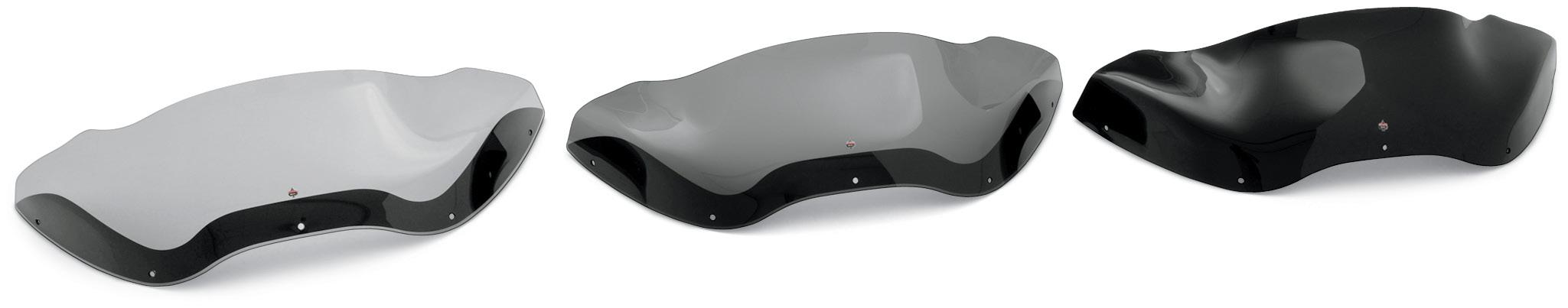 The Klock Werks Flare™ Windshield was originally developed out of a need for stability at high speeds while racing on the Bonneville Salt Flats. This innovative and patented design features “hips” on the sides that re-route air to create downforce on the front of the bike while the “flip” at the top kicks the air up, sending it back as clean, less turbulent air