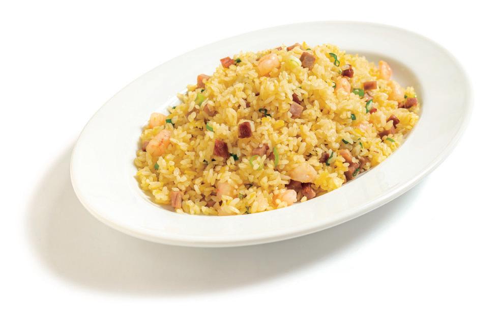 具に 焼と海鮮を使い、 卵で米を包むように強火で炒めパラリと仕上げました。