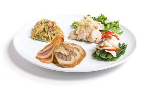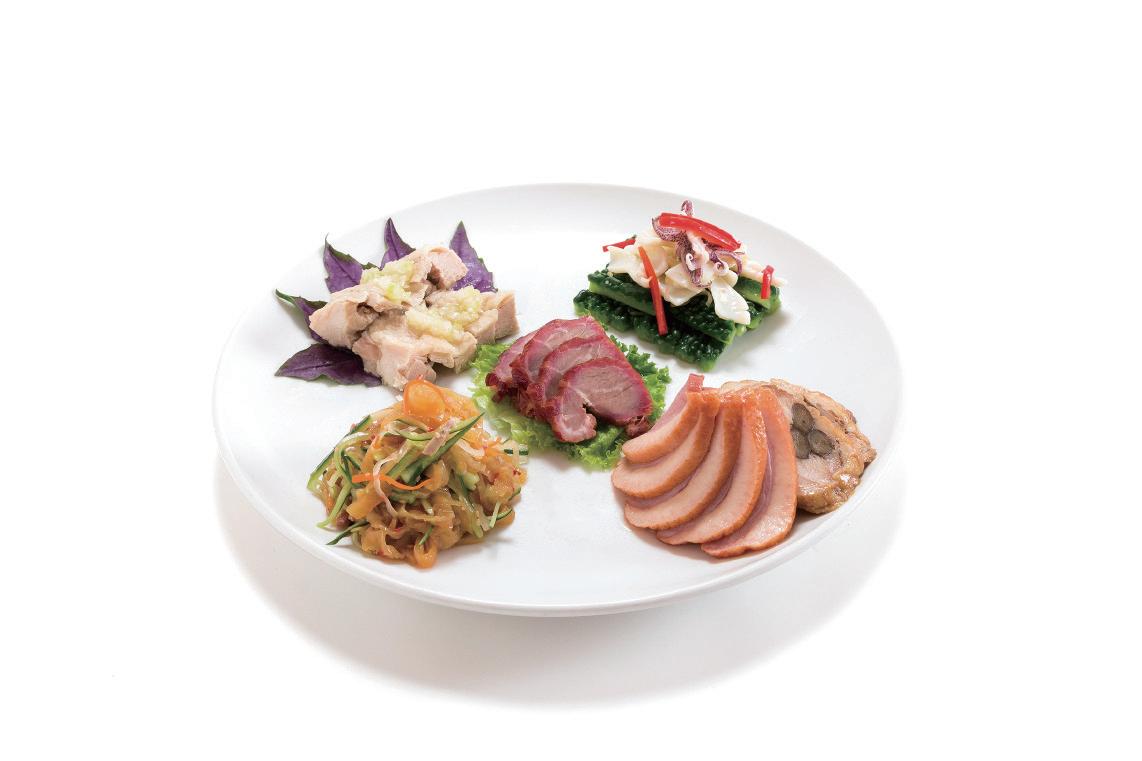 白葱ソースのかかった合鴨やくらげの酢の物など 彩り豊かな前菜はワインや紹興酒との相性も抜群! もちろんビールのおつまみとしてもオススメです。