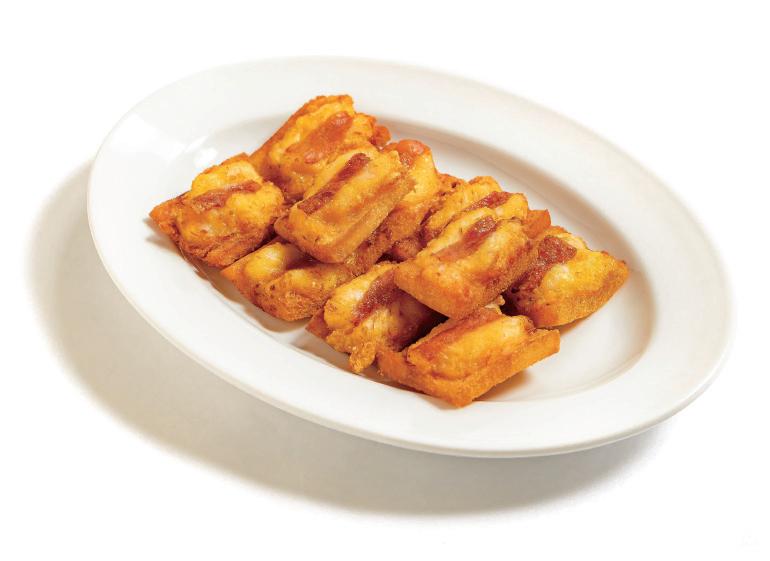 海老を一匹まるごと乗せた海老パンは 月苑飯店人気の揚げ物。