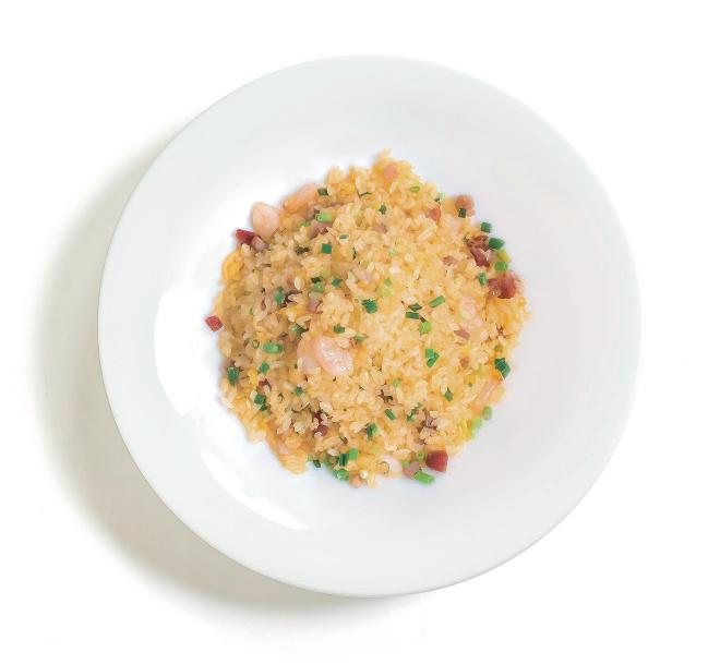 具に 焼と海鮮を使い、 卵で米を包むように強火で炒めパラリと仕上げました。