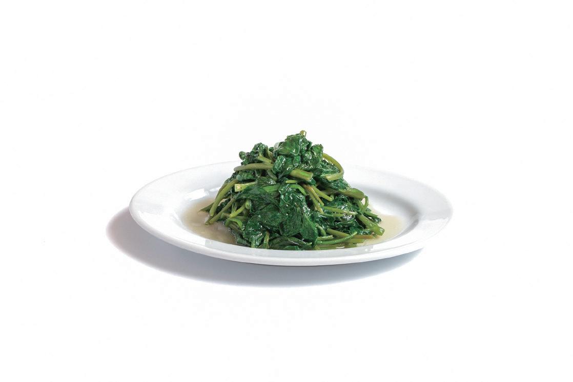 夏はエンサイ、冬はホーレンソウと牛肉を 強力な火力で炒めることで程よい歯ごたえが残ります。