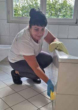 Sie bietet auch Putzleistungen für Unternehmen: «Ob Bürogebäude, Praxis, Laden oder Restaurant: Durch die Unterhaltsreinigung mit einem individuellen Reinigungskonzept stellt sich eine konti nuierliche Sauberkeit ein. Das macht nicht nur einen guten Eindruck auf Ihre Kunden und Gäste, sondern hilft auch, den Wert Ihrer Räume und damit der Immobilie zu erhalten.»