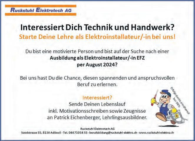 Dienstag, 22. August 2023 12. Jahrgang Nr. 6 – Auflage 34‘000 Expl. Die offizielle Zeitung von HGVA, Handwerk- und Gewerbeverein Adliswil; UVK, Unternehmervereinigung Kilchberg; Gewerbeverein Langnau am Albis; UVO, Unternehmervereinigung Oberrieden; UVR, Unternehmervereinigung Rüschlikon; HGV, Handwerk- und Gewerbeverein Thalwil. GEWERBEZEITUNG LernendeSpezialausgabe:undYoungsters Das Kompetenz-Zentrum für Gesundheit und Lebensfreude. Zürcherstrasse 65 | 8800 Thalwil | www.gesundheitspark.ch | info@gesundheitspark.ch | Telefon 043 388 41 41 • Fitness • Group Fitness • Medizinisches Rückentraining • Individuelles Gesundheitscoaching • Wohlfühl-Oase Day Spa • Physiotherapie • Massage • Tennis • Squash • Badminton • Boulderhalle • Über 90 gratis Parkplätze Boulderpark Thalwil 9GRA D Neuer Instagram-Kanal: «gwerblernews» – jetzt folgen!