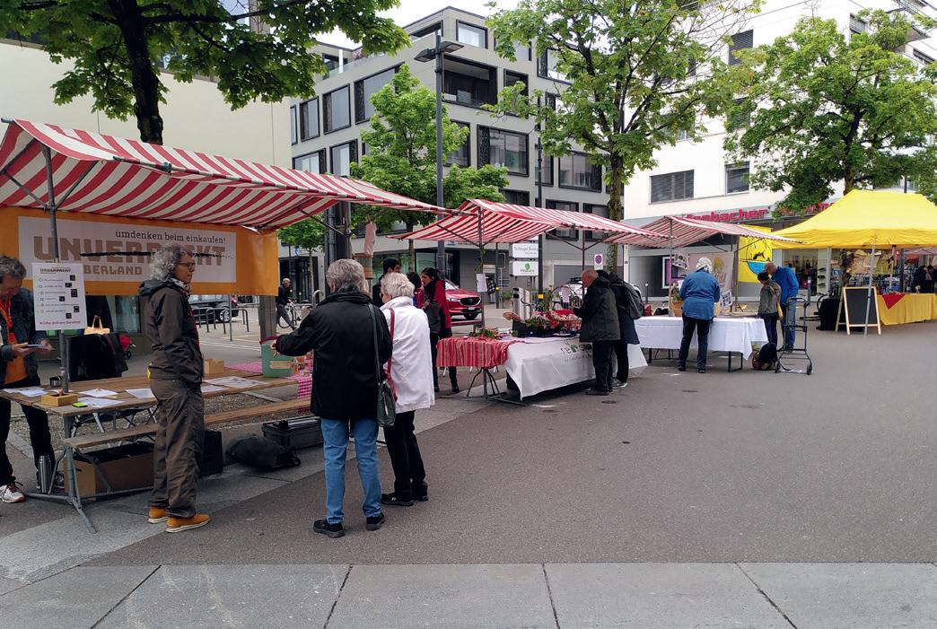 tigen Konsum vor. Lokale Organisationen und Unternehmen präsentieren an verschiedenen Marktständen im Stadtzentrum von 9 bis 16 Uhr ihre Produkte, Projekte und Aktivitäten. Ob Lebensmittel, Kleidung, Kosmetik, Spielwaren oder Haushaltsartikel: Das nachhaltige Angebot in Uster ist gross.