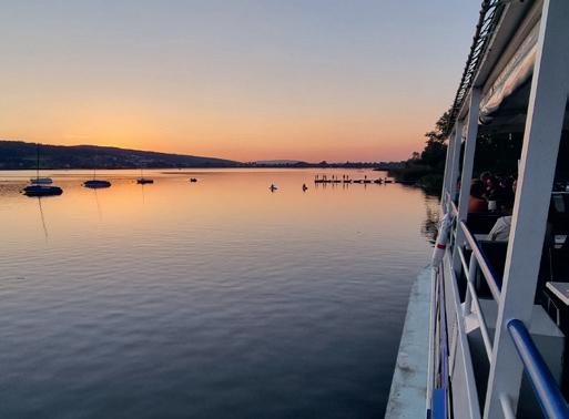 vom Alltag am Seeufer benötigt. Das Angebot reicht von Erfrischendem wie Eiskaffee, Bier oder einem Softdrink über feine Würste vom Grill bis hin zu kühlenden Glacés an heissen Tagen. Das vielfältige Angebot an Kulinarischen Fahrten und Erlebnisfahrten auf dem Greifensee ist ebenfalls zurück. Ob unkompliziert auf einer Abendrundfahrt in Begleitung eines Shanty Chors oder einem genussvollen Wine & Dine – das attraktive Programm im 2024 bietet etwas für jeden Geschmack.