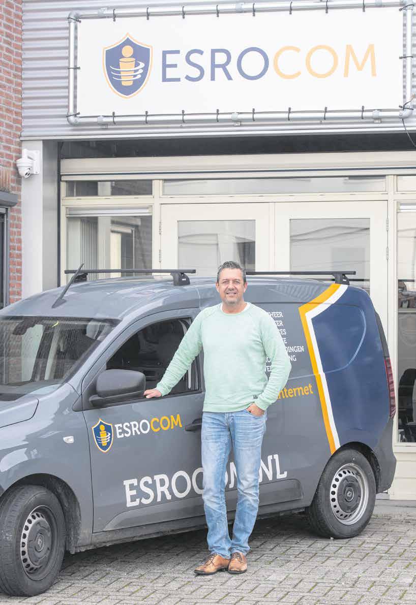 Esrocom is er voor het midden- en kleinbe drijf (MKB). Met een allround en up-to-date ICT kennisniveau, is Esrocom een gedegen partner of verlengstuk van een organisatie voor het realiseren en/of behouden van een stabiele en veilige ICT-omgeving. Of het nu gaat om digitale (VoIP) telefonie, netwerkbeheer, cloud-werkplekken, cyber beveiliging, trainingen, of glasvezel internet, Esrocom levert de benodigde diensten op maat voor elk bedrijf. Ook als het gaat over bescherming van bedrijfsgegevens tegen de cybercrimineel is Esrocom de aangewezen partij om de ondernemer bij te staan. Mark: ‘We helpen ondernemers zichzelf te bescher men tegen de cybercrimineel die helaas steeds vaker de lekken weet te vinden.’ Je zou denken dat je als mkb’er niets te vrezen hebt, want wat moeten cyberboeven met die kleine hoeveelheid gegevens? Niets is minder waar. Mark: ‘Vele kleintjes maken een grote en juist kleine ondernemingen zijn vaak niet goed beveiligd en dus een gemakkelijk doelwit. Cybercriminaliteit is een wereldwijd probleem. Door gebrek aan kennis, financiële middelen en tijd zijn kleine ondernemingen steeds vaker slachtoffer.’
