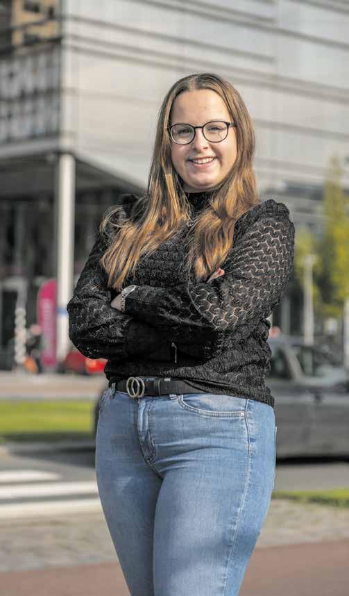 arbeidsmarkt. Op dit moment volg ik een minor in Marketing & Social Impact en in mijn tweede semester mag ik stage gaan lopen bij Port of Rotterdam op de afdeling communicatie.’ De wereld ligt aan haar voeten. Door haar energieke houding gecombineerd met een gezonde dosis zelfverzekerdheid, komt ze over als een jonge professional die weet wat ze wil en vastberaden richting haar doel beweegt. Het is haar wens om uiteindelijk werkzaam te zijn in de journalistieke sector als woordvoerder persvoorlichting bij een multinationale onderneming. De lesmethode van Hogeschool Inholland zorgt tevens voor het ontwikkelen van een hoge mate van zelfredzaamheid. ‘En dat past ontzettend goed bij mij We werken met leeruitkomsten in plaats van cijfers getoetst door tentamens en examens. Een leeruitkomst beschrijft wat je weet, begrijpt of doet in een fase na afronding van een leerproces. Je bepaalt zelf hoe je dat laat zien en ook de situatie waarin je dat aantoont kan van student tot student verschillen. Deze bewijzen worden verzameld in het bewijsdossier.’