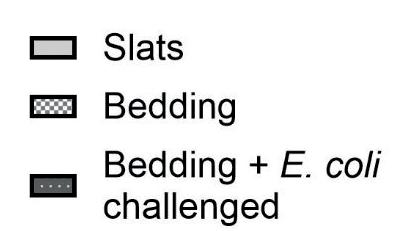 Average Concplasma over all sampling moments were 1.98 and 1.96 µg/mL (Table 2 and Figure 1). Findings indicate that concentrations vary between sampling points, with significant differences observed at certain times. The BIV was not significantly different at most sampling points. This field assessment of two flocks agrees well with findings from a laboratory study (data presented in Table 3 and Figure 2). Concentrations found in flocks in the field were higher than detected in the laboratory study with the same treatment regime and light scheme comparable to flock 1. Test groups kept on bedding are viewed as most comparable to the field situation. In the laboratory study, the variation in concentration between different sampling moments was not significantly different for the test groups kept on bedding (Levene’s robust test statistic (W0) test, p=0.10 and p=0.50). For the test group kept on slats there was a significant variation between the sampling moments (p=0.01).