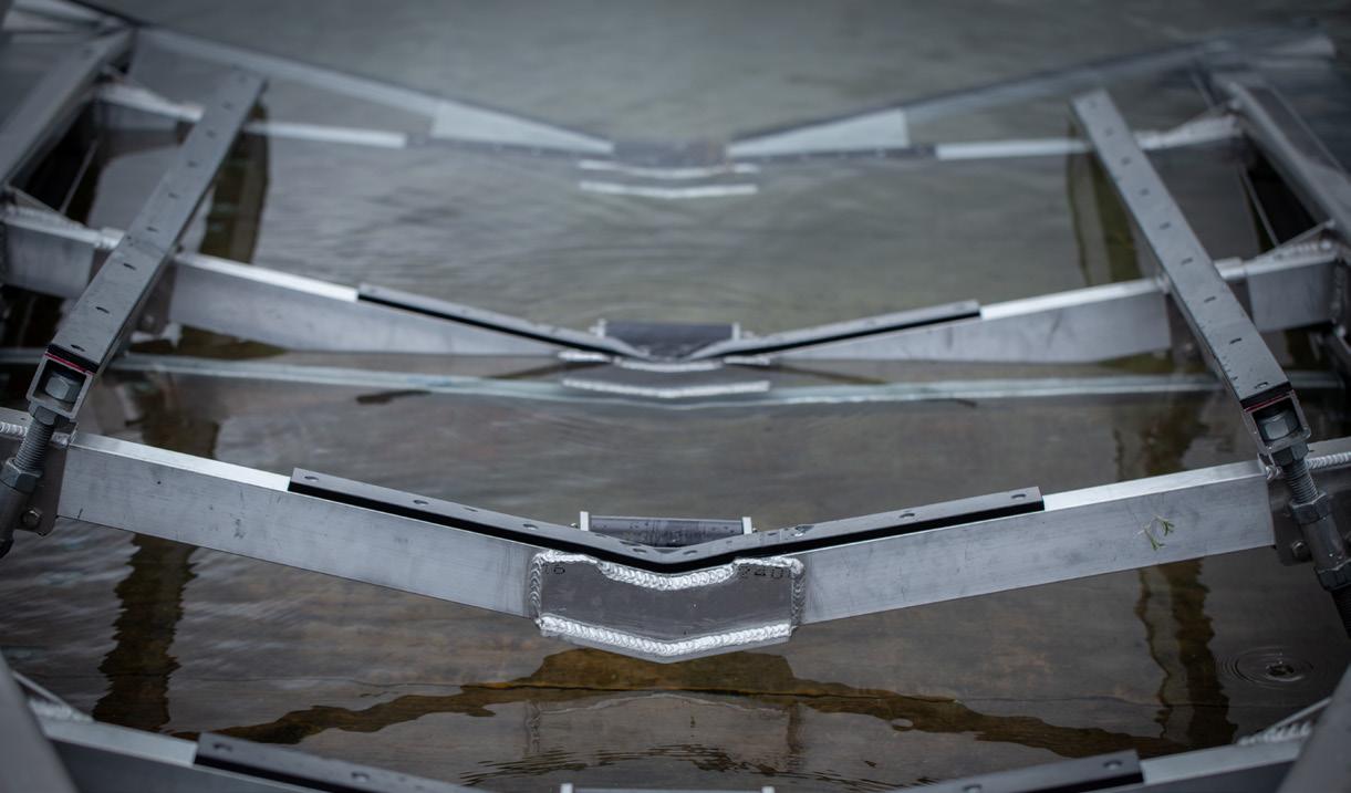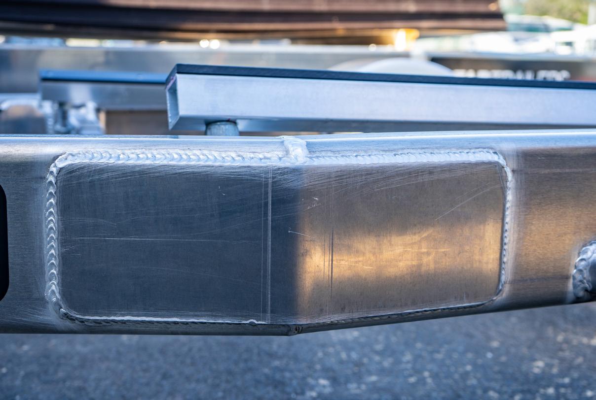 The frame is then welded together with cross members which have been designed to allow the boat to sit as low as possible on the trailer. Sitting low allows you the easiest launching and retrieving experience as it requires less water, and makes it a dream to tow.