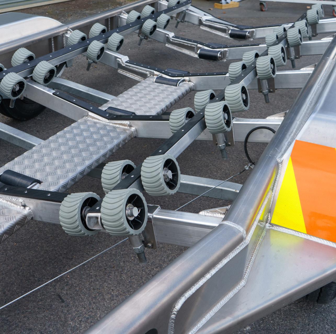 All GFAB Trailers come with keel rollers and plastic bunks as standard, however these can be upgraded to roller bunks if requested. (Standard on fiberglass boats to protect the gelcoat)