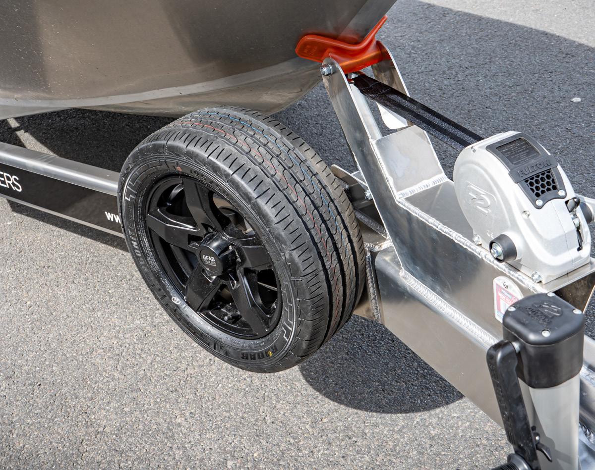 On our large boat trailers, with a weight limit between 2501-3500kg, we fit a Wireless Braking System. These systems don’t require you to make additional modifications to your tow vehicle, can be switched between suitable vehicles and works with both 12v and 24v power supplies. These systems typically control the amount of braking required and this can be controlled further from inside the vehicle using a wireless controller.