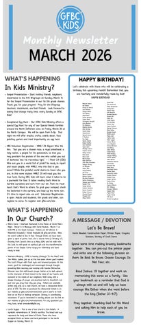 Gospel Presentation - Start inviting friends, neighbors, classmates to the 9:15 lifegroups on Sunday, March 15 for the Gospel Presentation in our 1st-5th grade classes Thank you for your prayers! Pray for the lifegroup teachers, classmates, and lost friends Look forward to seeing God change many lives every Sunday at GFBC Kids!