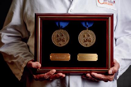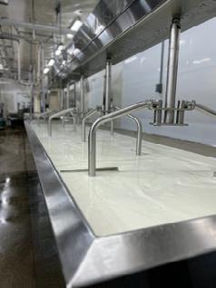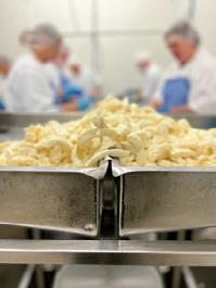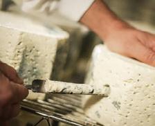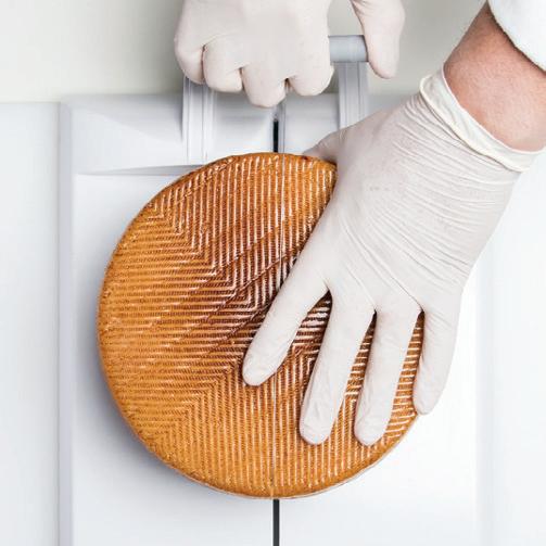 The log cut is similar to a barrel cut and allows the rind to remain around the cheese. We use the log cut to give even distribution of rind on the end of the log. Depending on the size of the cylinder, you can then cut them in half to reduce the size or cost of the sellable pieces.