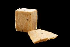 The objective of cutting a square cheese is to make sure that you have an equal amount of rind on each piece of cheese. If you were to cut this in a grid, you would have more rind on the corners than you would in the center cuts. To help prevent shrink, it is imperative to have each piece with the same rind to cheese paste ratio. Following the images above, continue to cut the square into triangle shaped pieces.